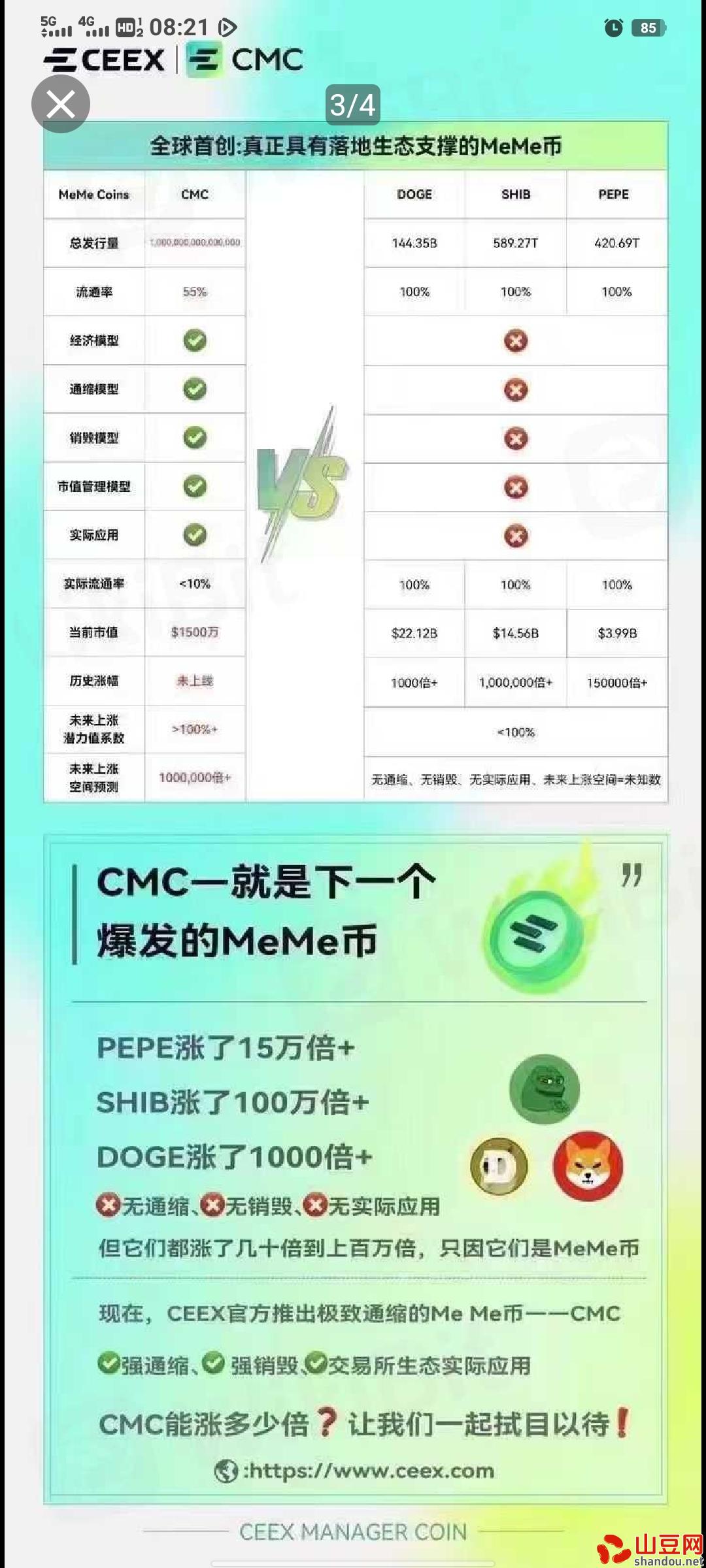 现在发行了平台币CMC.刚开始挖3来月并且已经上涨30倍左右,预估未来1到3年能达到百倍甚至千倍以上,