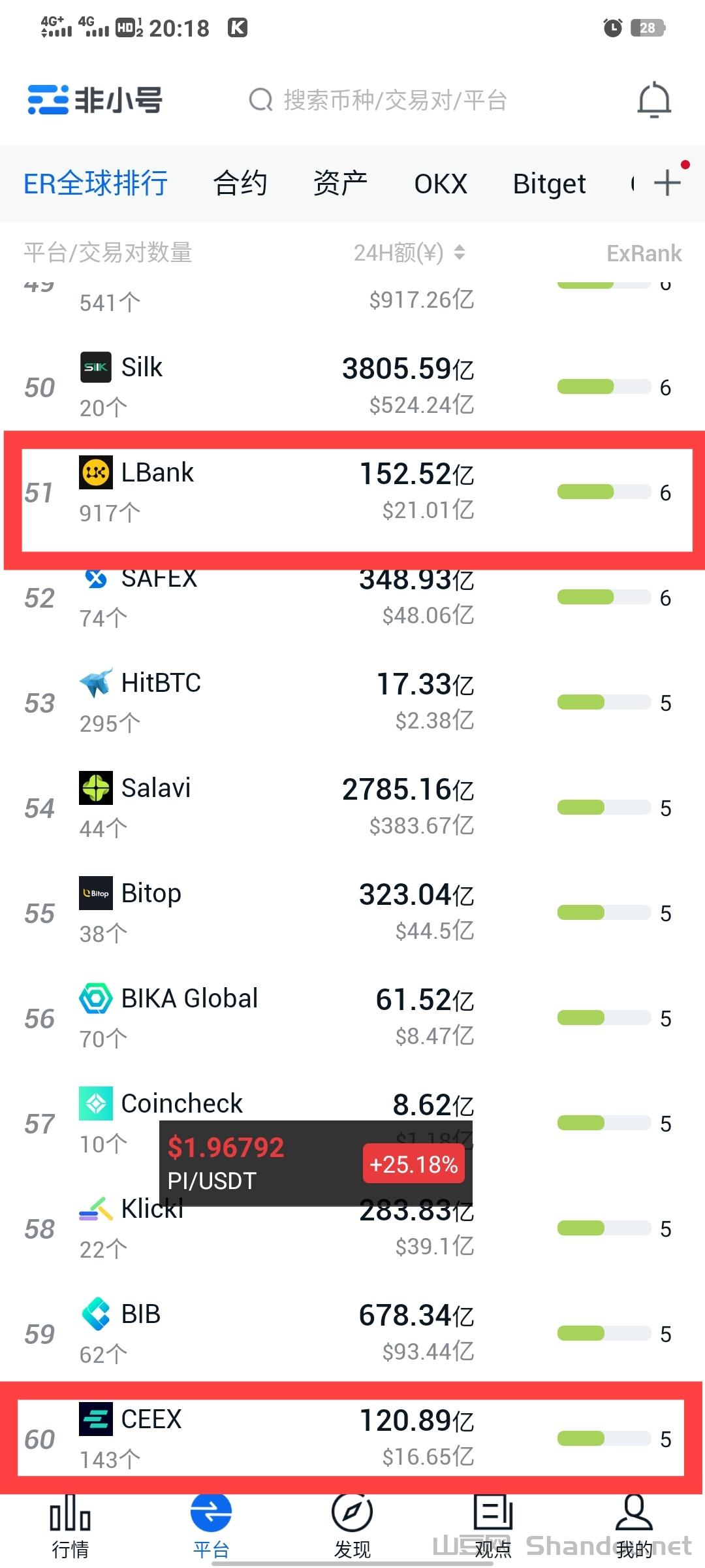 1.非小号权威数据查询,每天交易额均在百亿以上,成立2019年,全球排名60位,存在即合理!