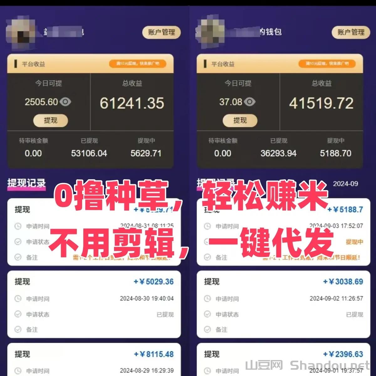 正文 发发视频就能赚?佣6米一单,支持抖音快手视屏号 AR项目网 V管理员 /01-21/36阅读/0评论 0121 抖音,代发发视频领钱,不用自己制作领取发布就行,每单3~6元,単个有抖喑号一天可做三単无需实铭,可绑定多个短视频仗号操作抖音,快手,视频号,都包含,一天零撸几十元加客f给开通团队收益(团队80%提成),长久平台,放心做,10提支付宝代发平台