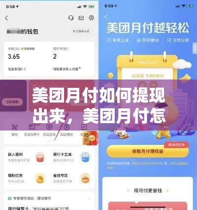 美团月付的提现方法主要有以下几种:通过银行卡提现。用户需要在美团月付账户中绑定自己的银行卡,然后在美团APP中选择我的-钱包-美团月付,进入提现界面。在此界面,用户可以选择提现金额并确认银行卡信息,完成提现操作。