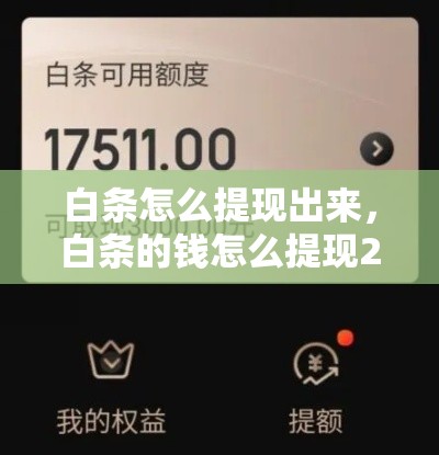 4、首先,你需要在京东金融APP上绑定一张储蓄卡。这是提现白条额度的前提条件,确保你的储蓄卡信息准确无误,且该卡支持京东金融的提现业务。白条额度提现:绑定储蓄卡后,你可以将京东白条里的可用额度提现到该储蓄卡中。在京东白条页面,选择“提现”功能,按照页面提示操作,输入提现金额并确认提现。