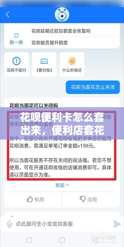 4、花呗是不能直接提取出来的。花呗作为一种消费信贷产品,其设计初衷是为花呗便利卡怎么套出来了方便用户在消费时能够使用信用额度进行支付,而不是作为现金提取工具。花呗的功能与用途 花呗的主要功能是让用户在购物或消费时,能够享受先消费后付款的便利。它并不支持将额度直接提取为现金。