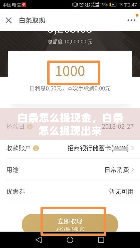 白条额度怎么取钱出来