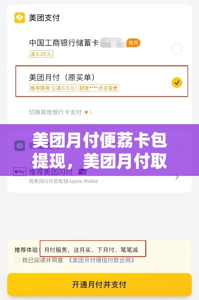 正文 美团月付便荔卡包提现,美团月付取现能提到银行卡吗 AR项目网 V管理员 /2025-12-27/40阅读/0评论 1227 像便荔卡包一样的口子有哪些 目前市面上类似便荔卡包的信用支付产品主要有京东白条、蚂蚁花呗、美团月付等,它们都提供先消费后还款的服务模式。主流信用支付产品1 京东白条:京东商城专属,支持线上线下消费分期,部分用户可提现。2 蚂蚁花呗:支付宝生态内使用,覆盖淘宝天猫及部分外部商户,有免息期。