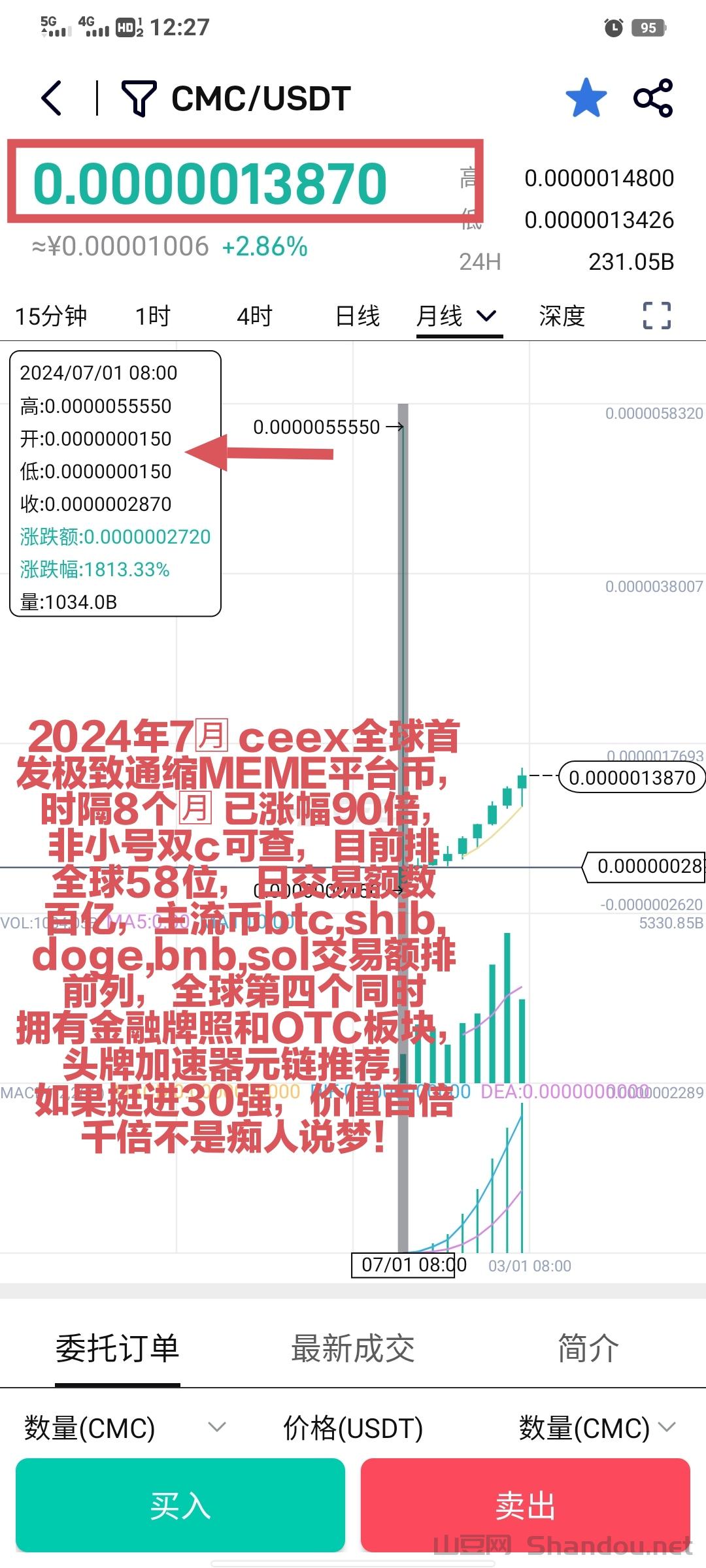 新人免费注册即送10000永久算力,每天可以挖3000枚cmc左右,先交易所实名认证,通过了,然后首页点击头像免费领取一万算力,cmc是全靠算力挖的,没有预售、没有私募!cmc是强通缩 +强销毁+交易所生态实际应用,B价阶梯式上涨√,cmc就是下一个万倍B,抓住机会! CMC 头矿期间