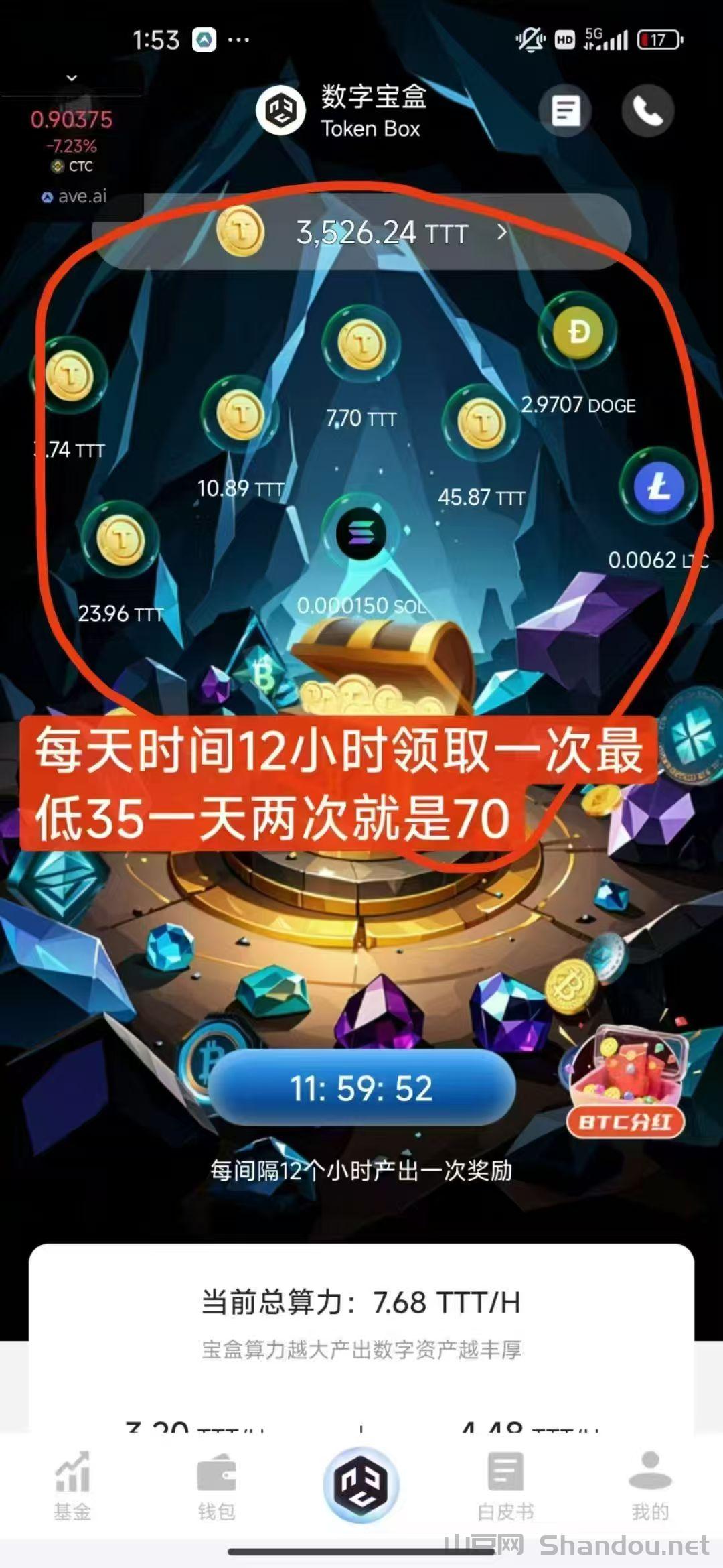 数字宝盒首码 零撸大肉,免費挖平/台币TTT币,目前1小时挖3.2个,一兲76.8个,无广告,每12小时一键开启即可领取。