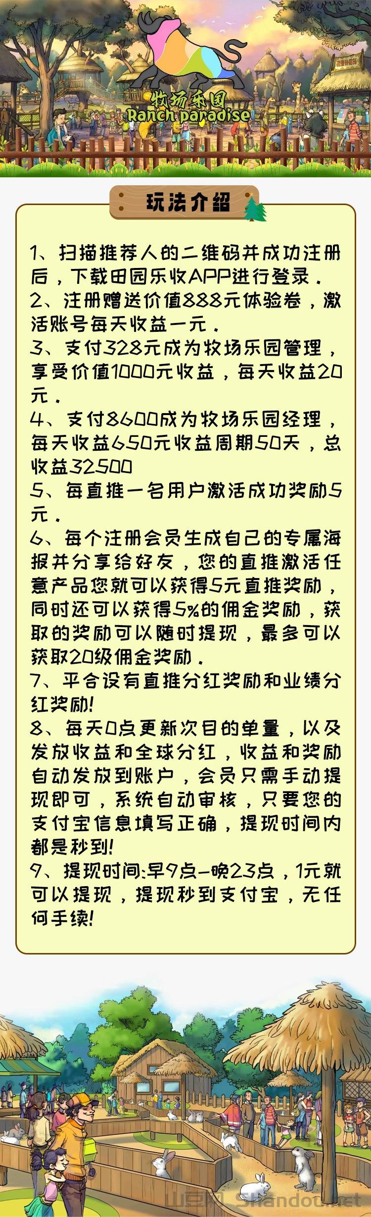 最新养成类首码项目【牧场乐园】动物养成收益,无广告,无脑收益,注册送福利888体验卡,激活每天3元,收益120天(简单易懂,释放双手)