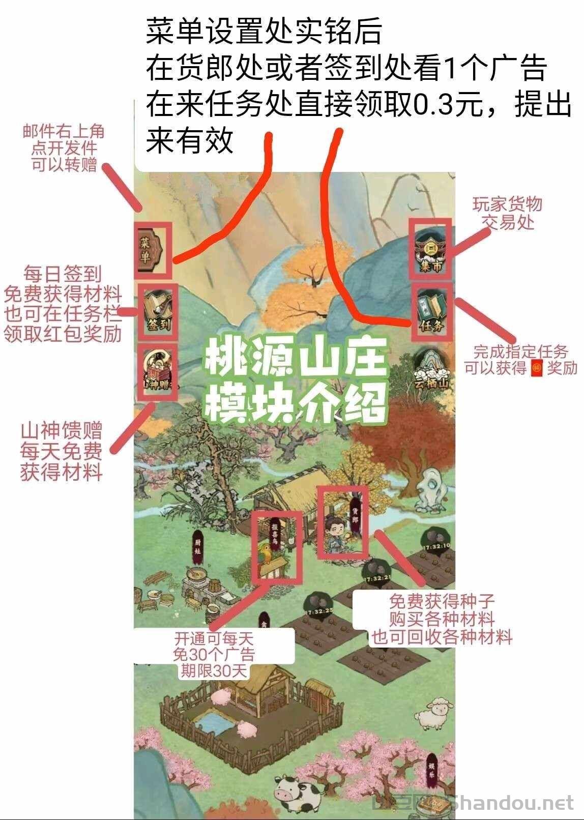 正文 桃源山记零撸保底高,多种创新玩法 AR项目网 V管理员 /01-12/75阅读/0评论 0112 桃源山记零撸,泡沫小,没有无限产出保底小麦1.8+转盘0.9*2.7元初始三块地,货郎处看广告获种子,种植收获作物直接官方回收或者集市出得玉石1个玉石2元,黑市群大量人在收消耗对应作物制作鱼饵钓鱼,回收得玉石菜品上架产10天玉石,到期换新品签到,山神赠礼转盘得作物,玉石等激活报喜鸟免看广告购斧产木材,回收得玉石